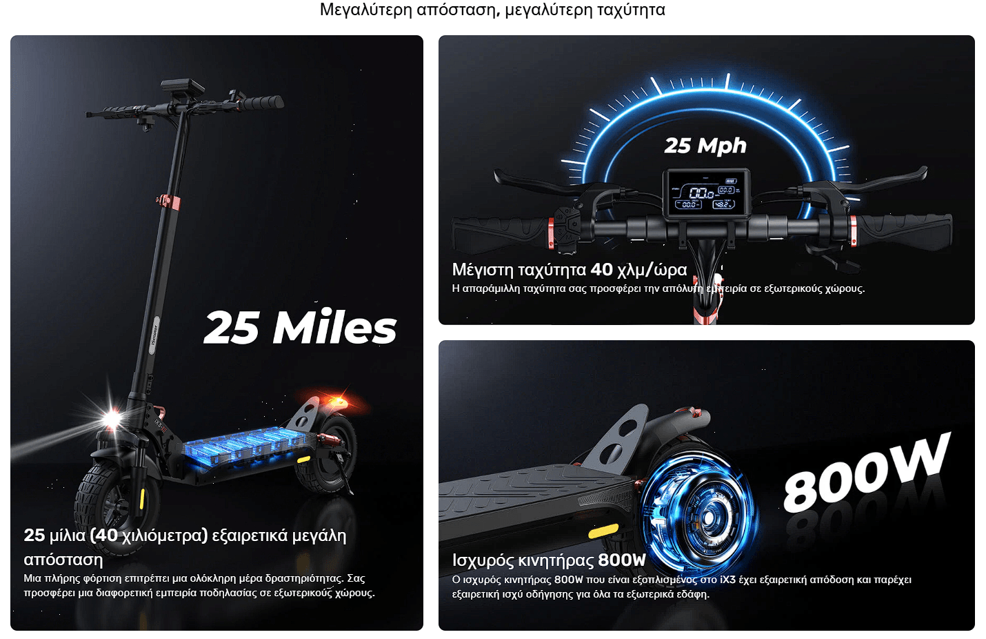Ηλεκτρικό Πατίνι IX3 800W 48V/10Ah 10" Dual Suspension Velogreen