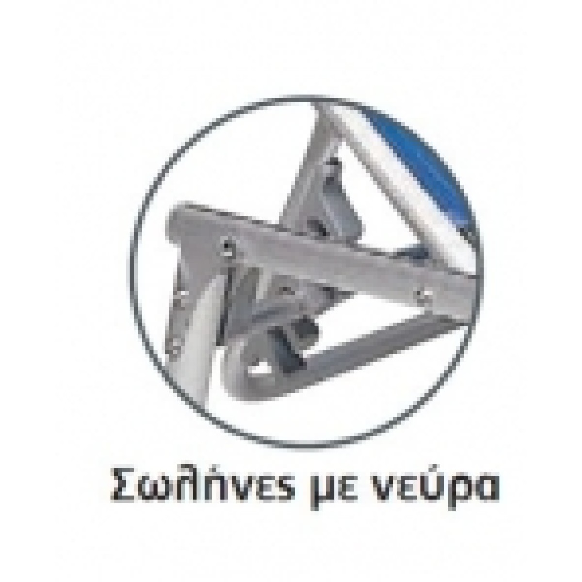 Σκελετός: Φ28x1mm, με σιδερένιο γαλβανισμένο σωλήνα εσωτερικά Φ25x1mm, 42cm στα μπράτσα, 38cm στο κάθισμα, 22cm στην πλάτη και 10cm στο εμπρός πόδι